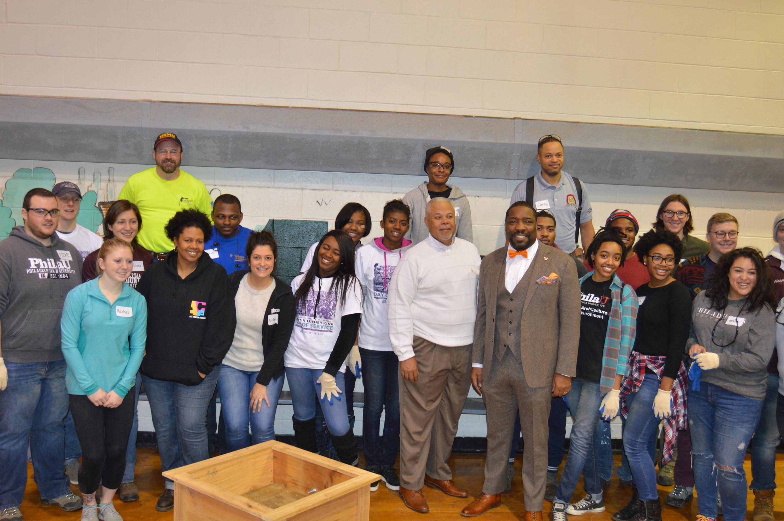 On January 16, 2017, ACE Mentor Program/GBCA/NRCC/Turner Construction Company made the MLK Day of Service 2017 project a HUGE success! There were over 150 volunteers at Francis Myers Recreational Center on Monday. Over 60 people helped construct about 40 cedar flower boxes to beautify the block of Cecil Street adjacent to the Cecil Street Garden. And the flower boxes were gorgeous! A few special thank yous: Tiffany Millner of ACE Mentor Program of Eastern PA for all her help planning and executing. Marsha Wall and Victoria Chambliss from Empowered CDC for orchestrating so many details. Turner Construction Company’s awesome crew of carpenters who joined us, led the project, provided tools and lumber, and did the take-off. Tague Lumber who helped with the materials. Councilman Johnson and Senator Williams, and their entire teams – it meant so much to the community and our volunteers that you joined us! Mungu Sanchez, Rob Naughton, and the Northeast Regional Council of Carpenters who provided some amazing skilled labor to help us out and lead our teams, and the Carpenters JAC who did all of our precuts! Kim Douglas and all the students who came from Philadelphia University to help! And every single person who had a hand in building and planning! What a way to kick off a successful 2017!